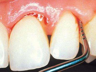 2.牙周袋的处理:牙周袋溢脓时,可用1%~3%过氧化氢液冲洗,并在牙周袋内置10%碘合剂或螺旋霉素、灭滴灵等药膜。在去除局部因素后,较浅的牙周袋可用碘酚液烧灼;较深的牙周袋需作牙周手术,以消除牙周炎。牙周袋深达根尖、牙齿松动明显时,则需要考虑拔除。