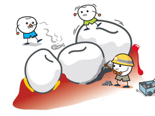 牙齿在靠近牙龈处因蛀牙形成了黑褐色的龋洞后,其边缘不整齐而呈锋利状,常会刺激牙龈发生溃疡而引起出血。