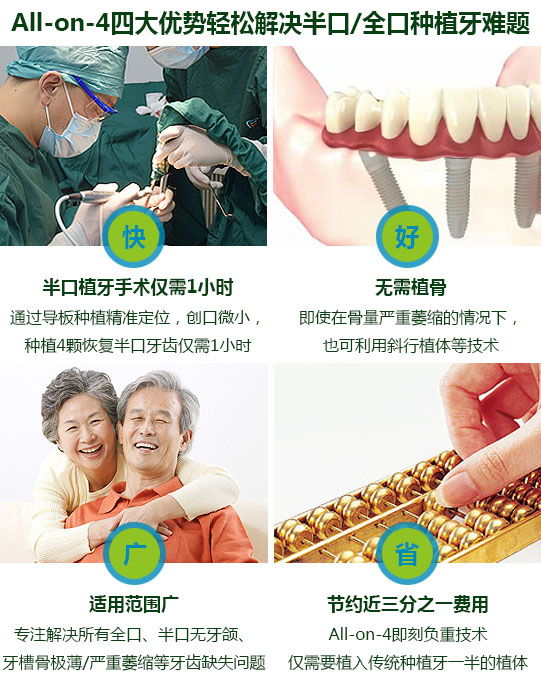 All—on—4是欧美先进的口腔种植牙技术,主要针对修复半口无牙和全口无牙患者,