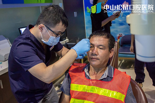 松鼠口腔梁金路医师为受伤师傅处理伤口